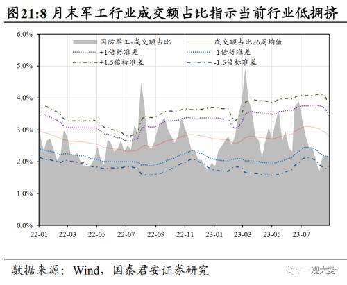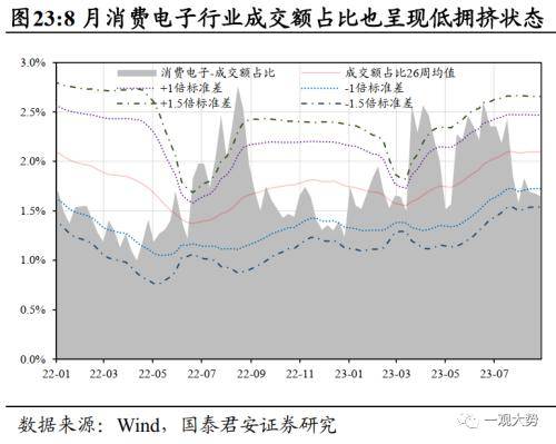 3)设备硬件(通信/消费电子/军工/电力设备):经过反弹之后,科技软件端的成交额占比已回到合理区间,通信行业拥挤度继续回落,8月末已跌破近半年-1.5倍标准差。军工、消费电子处于-1倍标准差附近,电力设备拥挤度也显著缓解。