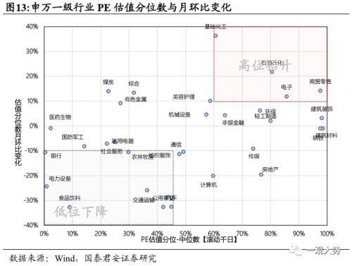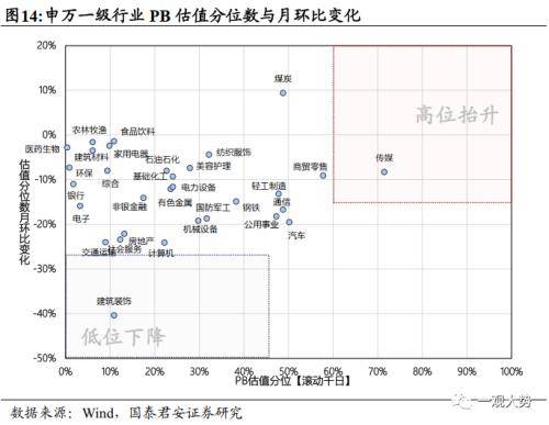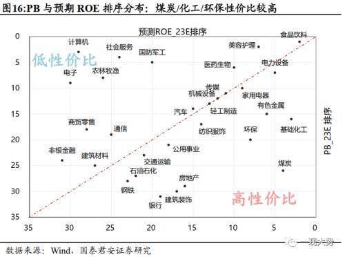 2)PB-ROE视角:当前性价比较高的一级行业包括:基础化工/有色金属/环保/煤炭,性价比较低的行业包括:计算机/农林牧渔/军工/社会服务/电子。