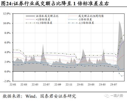 交易结构:装备制造、可选与服务消费拥挤度低。1)中游制造的交易拥挤度整体较低且机构资金流入。电子/电池/军工成交额占比回落至低位,电子兼具短期不拥挤与长期机构持仓低的优势。2)可选与服务消费交易结构占优。当前可选消费机构持仓普遍不拥挤,且北向资金并未大幅流出家电、美妆等重仓板块,经过前期调整相关赛道拥挤度已显著缓解。3)大金融板块拥挤度提升,房地产交易高热,成交额占比迅速提升,但股价却并未明显上行。证券板块拥挤度略有回落但仍处在拥挤区间。银行与保险整体拥挤度仍在合理范围内。