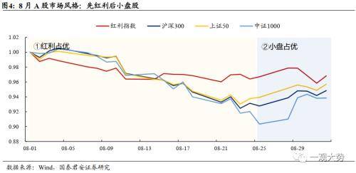 8月市场风格复盘:先红利后成长。8月A股市场经历了前三周的持续回调,并在最后一周实现底部反弹。从市场风格走势上看,8月可分为三阶段,①阶段1:08/01-08/25,在对7月底政治局会议释放的利多因素充分交易和定价后,政策的短暂真空,实际经济周期的不断寻底,海外美债利率的抬升以及中美关系扰动成为市场承压的利空因素。在此阶段,更具有确定性和稳定性优势的金融稳定风格指数以及红利指数相对占优。②阶段2:08/28-08/31,活跃资本市场和房地产支持性重磅政策密集落地,市场悲观预期修复,高风险偏好投资者推升高风险特征的股票,市场重心在新兴成长和热点投资主题,小盘成长股明显占优。