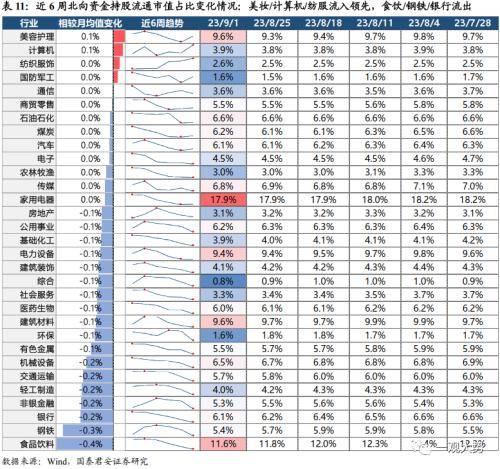 1)北向资金:多数行业遭北向资金流出,食品饮料/钢铁/银行流出幅度居前,美妆/计算机/纺服获资金流入。以北向资金流通市值持股占比情况来看,行业普遍遭北向资金卖出,一级行业8月最后一周较月均值的中位数是-0.08%。整体上,北向资金重仓的食品饮料、建材、机械遭持续流出,但美容却获增配。北向资金加仓(或减仓不多)的行业也一个重要特征就是持仓比例相对较低,如计算机/纺服/军工/通信等。