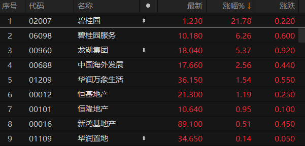 原标题:恒生地产指数午后拉升 碧桂园涨超20%