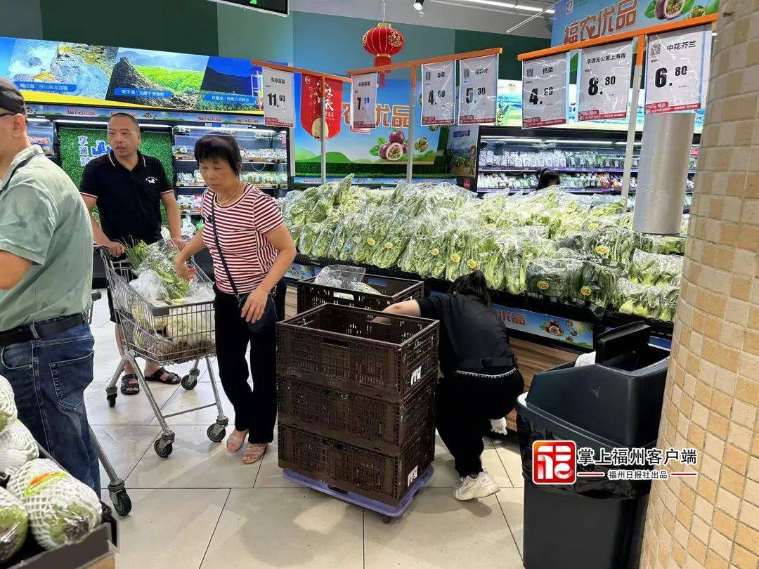 福州市商务局表示,福州全力保障台风天“菜篮子”供应,目前福州市场“菜蓝子”货足价稳。