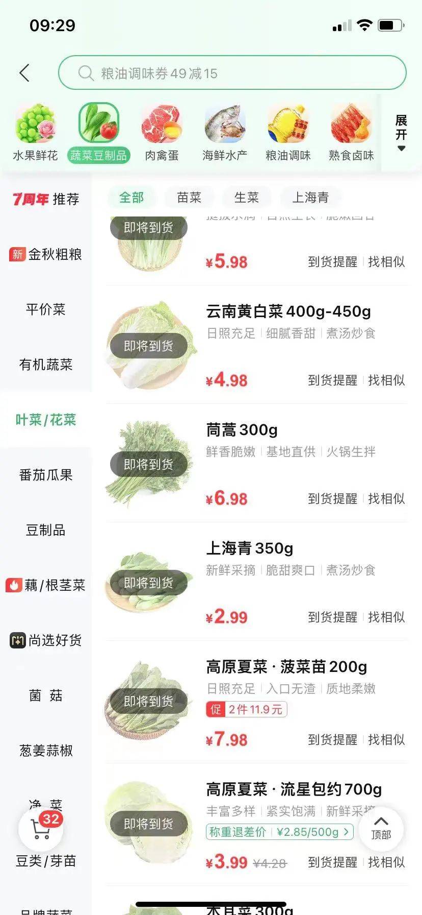 前戈9.9元/斤、白菜2.19元/斤、