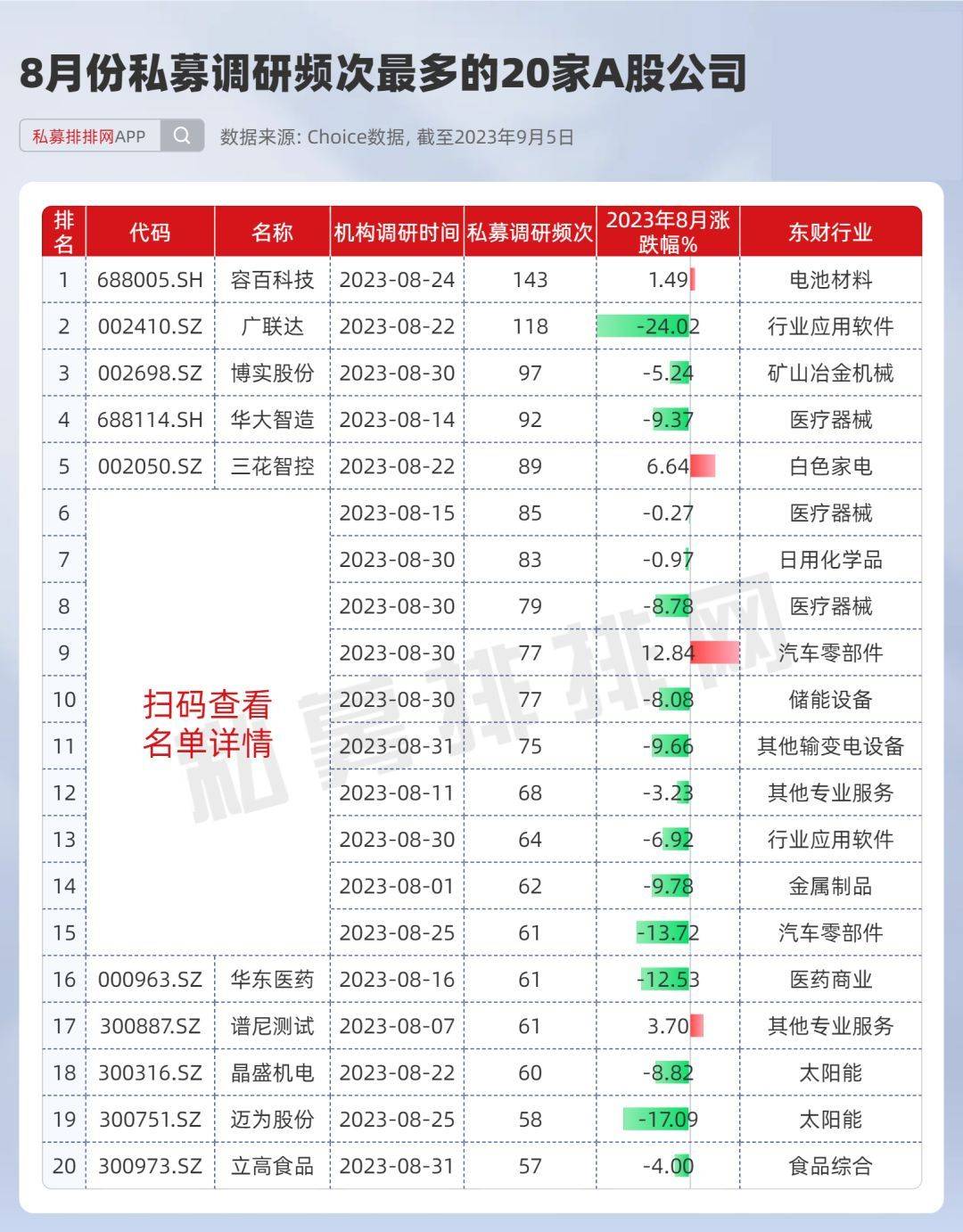 虽然资本市场行情跌宕起伏,但是仍然有不少知名私募机构“马不停蹄”的调研上市公司。一般来说,调研是机构投资者获取公司和行业信息的重要手段,在一定程度上代表着机构关注的方向。那么,8月份私募机构瞄准了哪些行业和标的?