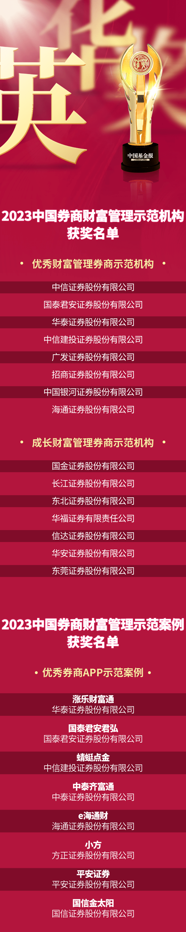 8家券商获评优秀财富管理券商示范机构,7家券商获评成长财富管理券商示范机构,8家券商APP获评优秀券商APP示范案例。