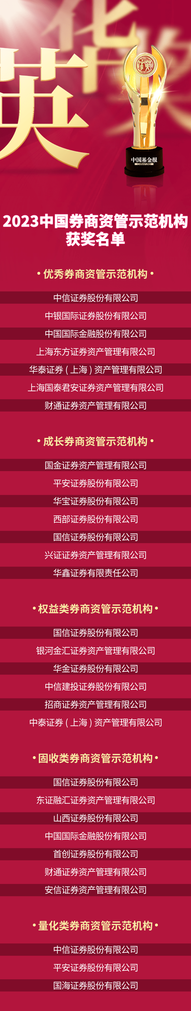 7家券商(或券商资管子公司,下同)获评优秀券商资管示范机构,7家券商获评成长券商资管示范机构。