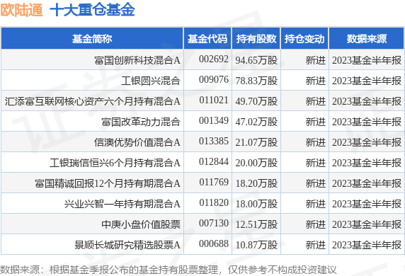 重仓欧陆通的前十大公募基金请见下表: