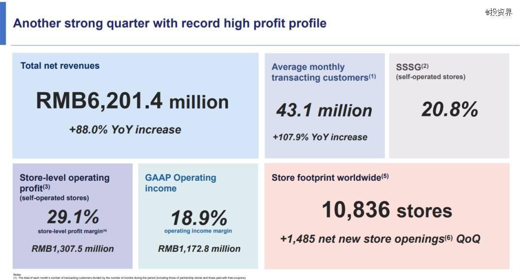 最近一次财报显示,瑞幸咖啡第二季度总净收入为62亿元人民币(约为8.55亿美元),同比增长88%,美国会计准则(GAAP)下营业利润11.73亿元人民币,营业利润率为18.9%,创历史新高。难以想象,一杯看似不赚钱的9.9元咖啡,瑞幸却依然坐拥超过10亿的利润。业绩沟通会上,瑞幸咖啡董事长兼CEO郭谨一称,决定将9.9元咖啡常态化,至少持续两年。