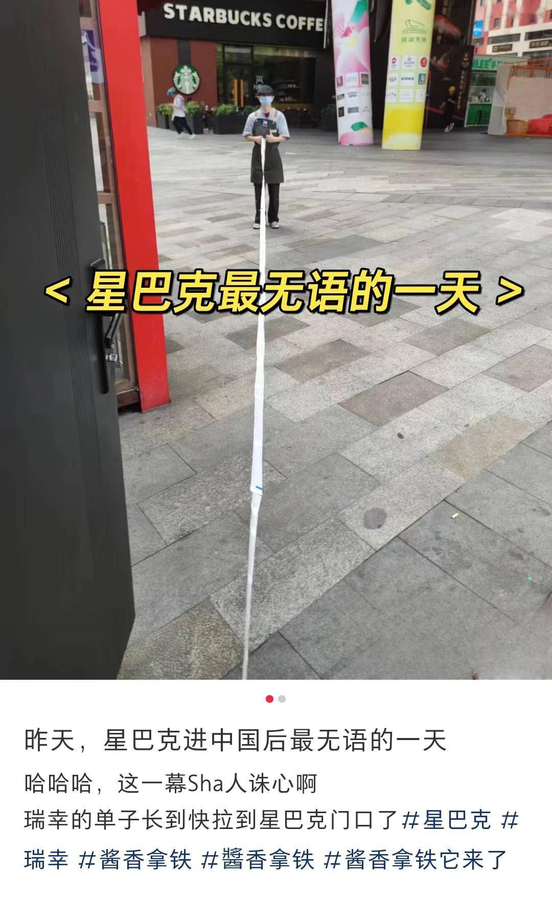 酱香拿铁杀得其他咖啡店片甲不留。当地官方媒体报道,因瑞幸订单疯涨,杭州有咖啡店的生意少了一半。就连瑞幸的对手星巴克也不能幸免于难,小红书上有图片曝出,瑞幸的单子长到拉到了星巴克门口,“这一刻,杀人诛心”。