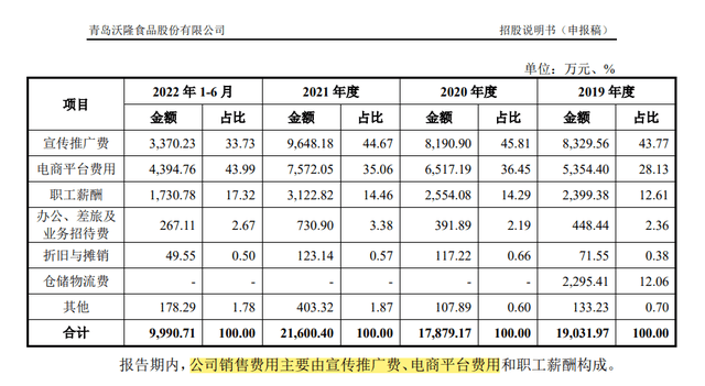据招股书,沃隆食品报告期内的销售费用分别为1.90亿元、1.79亿元、2.16亿元和9990.71万元。三年多时间内,砸在营销上的费用就近6亿元。