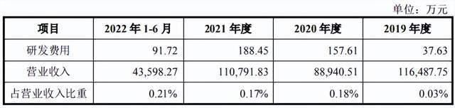 报告期内,公司研发费用分别为37.63万元、157.61万元、188.45万元,研发费用占当期营业收入的比例分别为0.03%、0.18%、0.17%。
