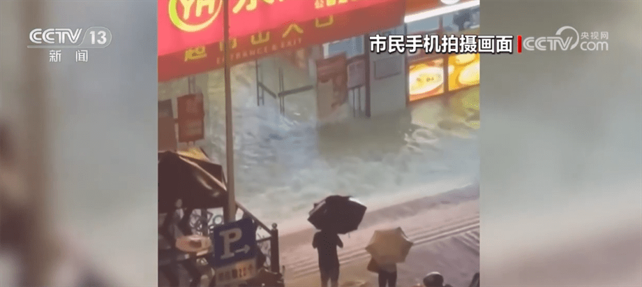 总台记者 黄珊:我现在所在的位置是福州市区靠近三环附近的一家超市的门口,这家超市也是福州当地的一家重要连锁超市,大家可以看到它是处于一个地下一层的位置。接下来要给大家看一段视频,这是附近居民昨天晚上通过手机拍摄到的画面,受到持续强降雨影响,雨水迅速涌入超市的大堂,把整个超市内部全部淹没了。现在我们在现场可以看到,台阶的这部分积水已经基本退去,在门口也能看到工作人员用了很多购物筐以及沙袋,对雨水和积水进行一个阻隔的作用。与此同时,在旁边我们还能看到,工作人员正在用一个抽排水设备,对超市的积水进行紧急抽排。