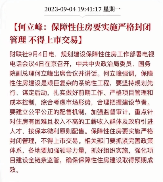 在本周的一场会议上,也有高层表态:“保障性住房要实施严格封闭管理,不得上市交易。”
