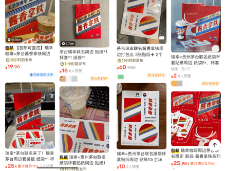 此外,“酱香拿铁”免费周边也在二手平台被炒卖,引发网友们的关注和热议。