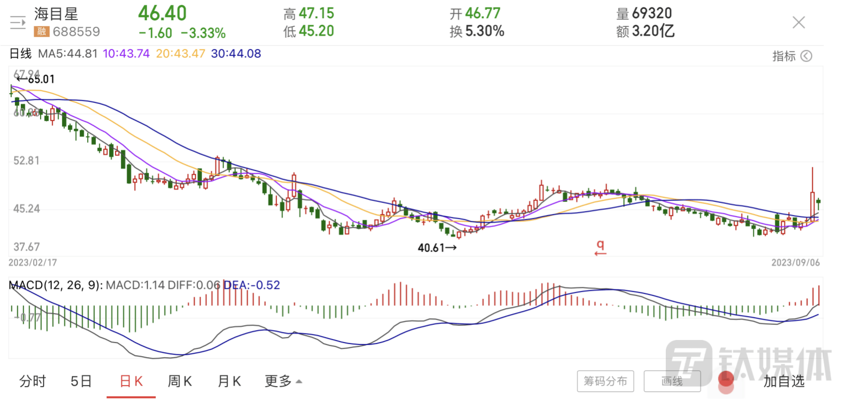 二级市场方面,自今年2月中旬以来,公司股价呈波动下滑的趋势,于6月29日创出2023年新低,为40.81元,随后触底回升。截至9月6日收盘,公司股价报收46.4元,跌幅3.33%,当前总市值为93.6亿元。