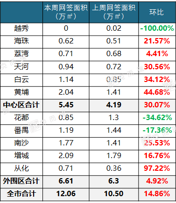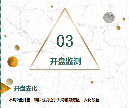 增城、黄埔等郊项目集中补录拉升整体签约热度,如合景·花䕕四季(54套)、保利罗兰国际(42套)表现较好。