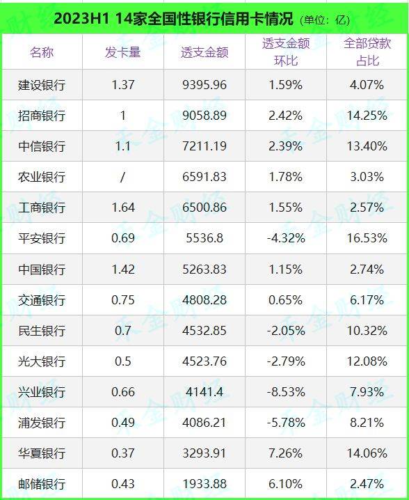 2023年上半年,全国性银行信用卡中心数据呈现马太效应。