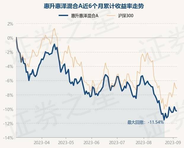 9月6日,惠升惠泽混合A最新单位净值为0.9645元,累计净值为1.1445元,较前一交易日下跌0.08%。历史数据显示该基金近1个月下跌4.45%,近3个月下跌2.45%,近6个月下跌10.25%,近1年下跌12.13%。该基金近6个月的累计收益率走势如下图: