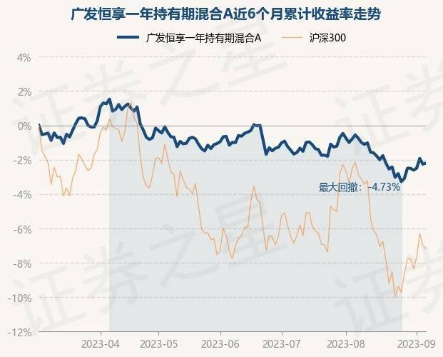 9月6日,广发恒享一年持有期混合A最新单位净值为0.989元,累计净值为1.0222元,较前一交易日上涨0.06%。历史数据显示该基金近1个月下跌1.65%,近3个月下跌1.05%,近6个月下跌2.21%,近1年下跌1.82%。该基金近6个月的累计收益率走势如下图: