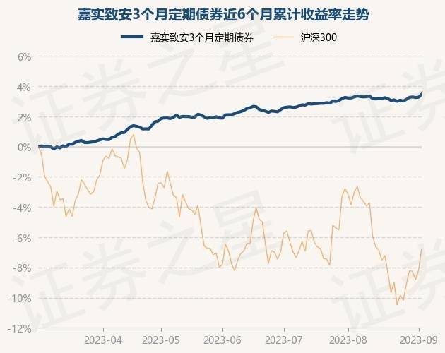 9月5日,嘉实致安3个月定期债券最新单位净值为1.1337元,累计净值为1.1651元,较前一交易日下跌0.11%。历史数据显示该基金近1个月上涨0.0%,近3个月上涨1.26%,近6个月上涨3.45%,近1年上涨3.18%。该基金近6个月的累计收益率走势如下图: