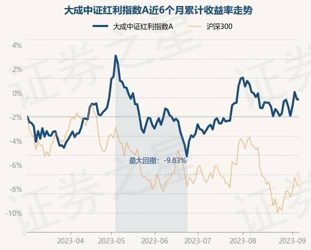 9月6日,大成中证红利指数A最新单位净值为2.297元,累计净值为2.453元,较前一交易日下跌0.04%。历史数据显示该基金近1个月下跌1.59%,近3个月上涨2.59%,近6个月上涨1.73%,近1年上涨2.23%。该基金近6个月的累计收益率走势如下图: