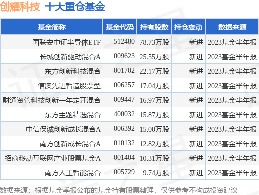 重仓创耀科技的前十大公募基金请见下表: