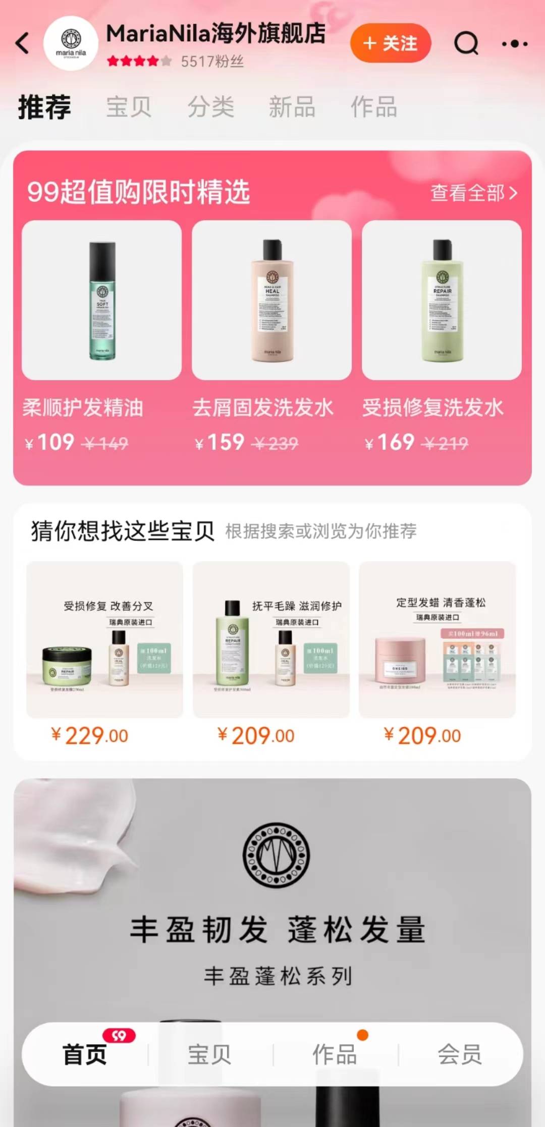 公开资料显示,Maria Nila于1999年在瑞典成立,是一家提供100%纯素和气候补偿型护发产品的环境友好型公司,目前进驻了45个国家,在中国也设有海外旗舰店,产品涵盖发膜、洗发水等,定价从99元-458元不等。