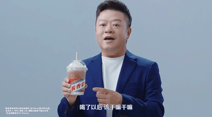 瑞幸请到的马东举着酱香拿铁说,每杯酒精浓度低于 0.5%,喝了以后该干嘛干嘛。