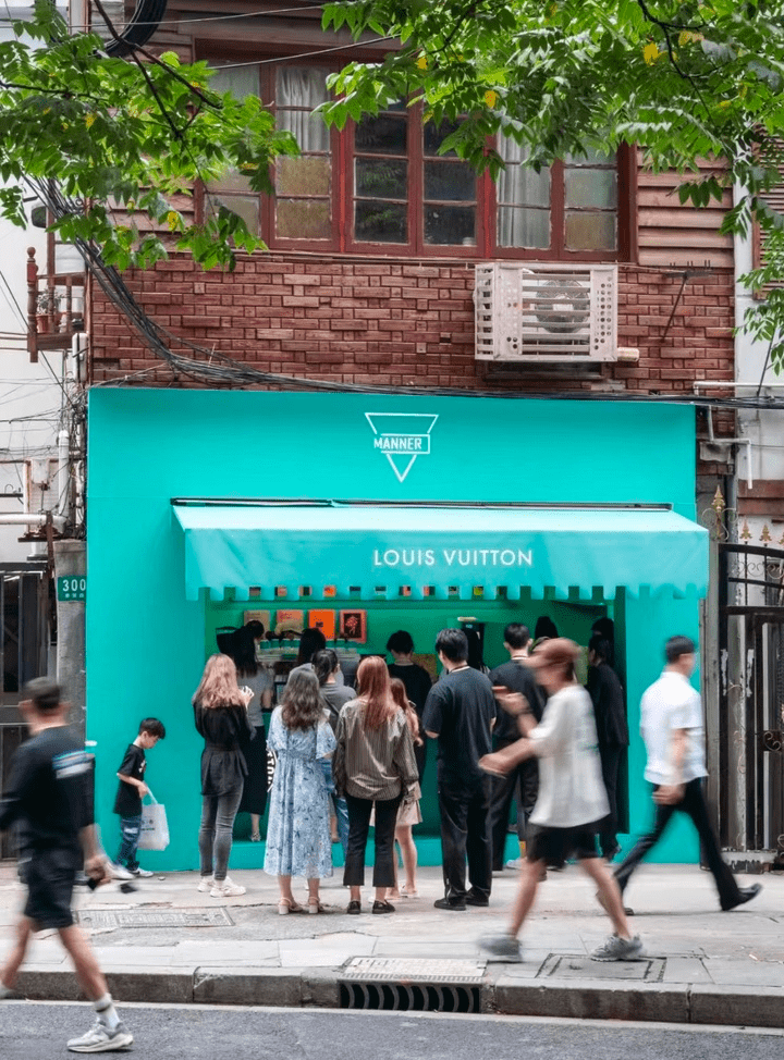 LV 借着 Manner 的宝地,主要售卖咖啡和 LV 的书,至少买两本书才能获得帆布袋。