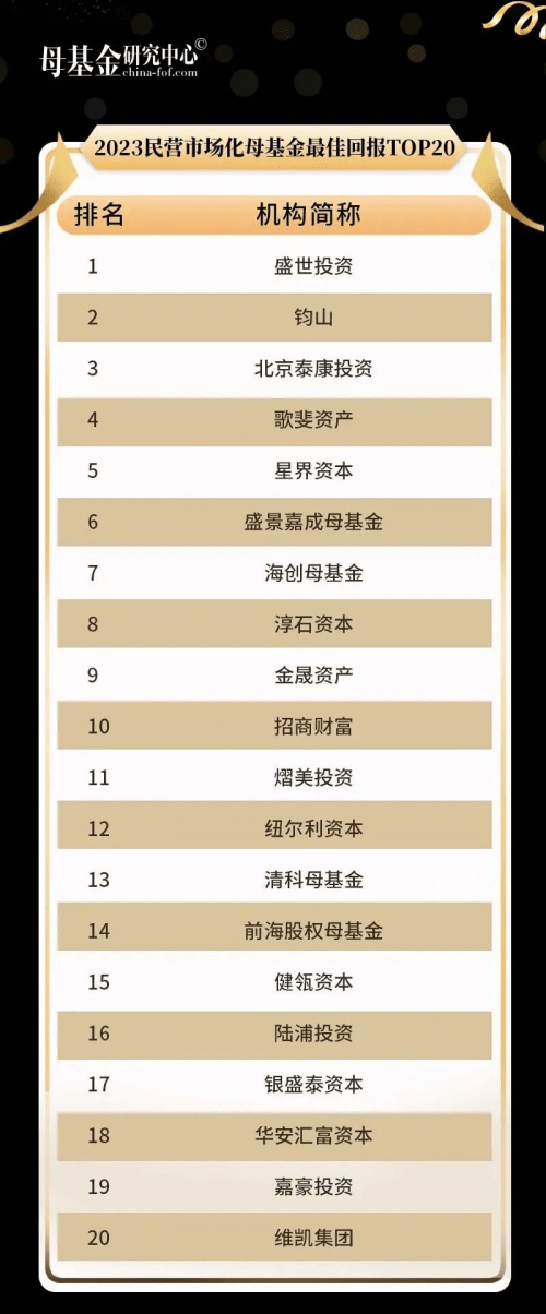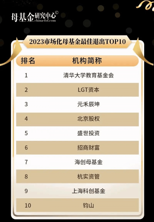 近日,母基金研究中心发布了2023专项榜单。榜单围绕风控、回报、退出等维度,通过对政府、国资、市场化母基金以及VC/PE机构进行深入调研评估而综合评定选出。在30多项榜单当中,钧山登上“2023民营市场化母基金最佳回报TOP 2”,和“2023市场化母基金最佳退出TOP 10”两项榜单。