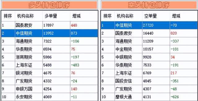 先来看下对下一个交易日有预判作用的“神器”——中信期货在股指期货上的增减持情况。它在沪深300股指期货上多单方面增仓873手,空单方面减仓70手,给出了“偏多”的信号——预判失误。