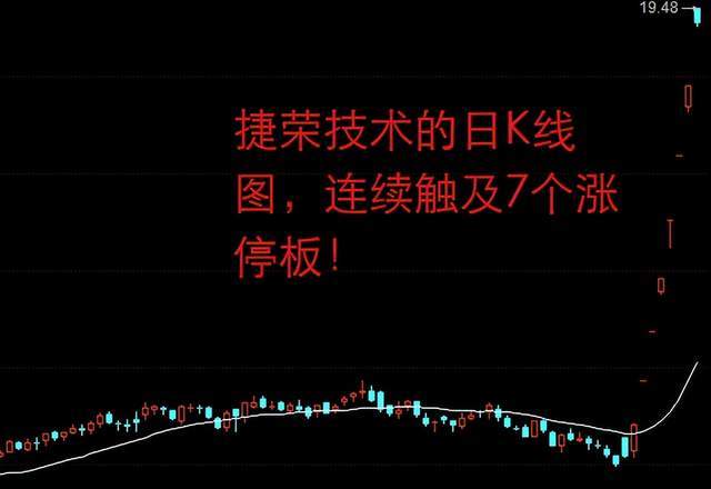 盘面上,捷荣技术以一字涨停板的姿态呈现在股民的面前,这已经是它连续触及的7个涨停板了!不过,由于大市行情走弱,它在尾盘时被砸开了,对此,有股民感慨道:“最后一刻破防了”!在我乐家居止步于8连板后,市场的希望都放在了捷荣技术的身上,可惜的是,市场还是太弱了,它功亏一篑。