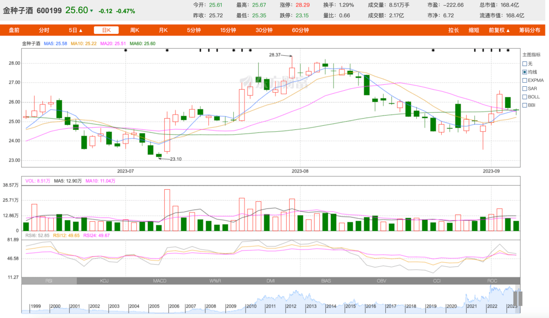9月6日,金种子酒以25.6元/股收盘。进入8月以来,金种子酒股价坐上了过山车,从28.2元/股跌至24.31元/股,降幅约为13.79%。