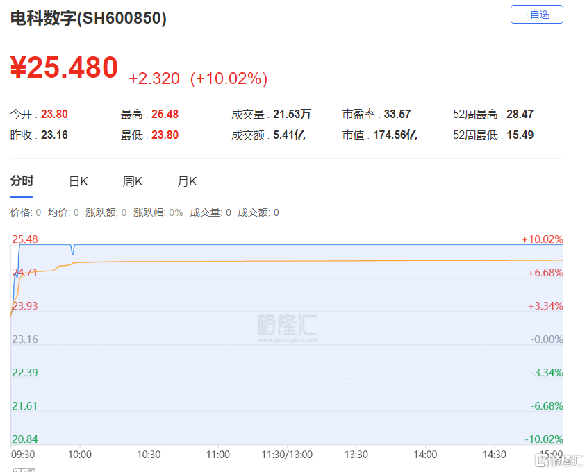 电科数字:今日涨停,成交额5.41亿元,换手率3.88%。龙虎榜数据显示,1机构净买入7551.43万元,1机构净卖出1745.61万元。