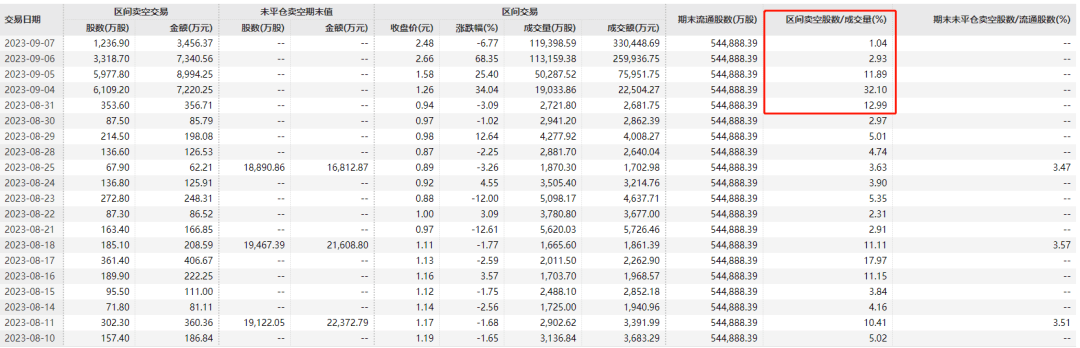 在9月4日时,单日最高卖空股数高达6109万股。直至9月7日,卖空股数下降到1237万股,卖空股数大幅下跌。