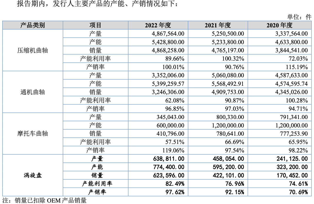 然而,钛媒体APP注意到,公司当前产能利用率并不饱和。尤其是通机曲轴,2022年产能同比减少了16.92万件,但产能利用率还从上一年的90.87%降至了62.08%。