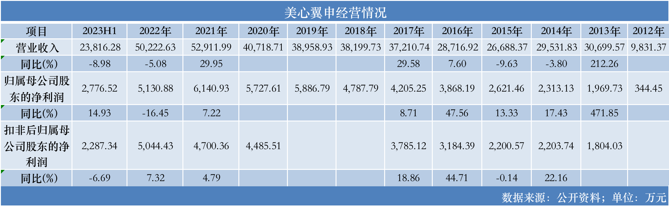 公开资料显示,美心翼申成立于2012年6月,最初由王安庆、夏明宪、徐峥鸣三名创始人出资设立。同年9月,增资入股并与徐争鸣签署《委托表决协议》,由此拿下美心翼申控制权。然后来,公司股权多次更迭,到2017年底,创始三人重新控制公司;2021年夏明宪退出,到目前公司实控人一直为王安庆和徐峥鸣二人。