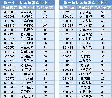 将时间周期缩短到最近一周(8月31日-9月7日)来看,基金调研数量第一的公司是宁波银行,属于银行业, 公司主要从事 吸收公众存款;发放短期、中期和长期贷款,共被53家基金机构调研;然后被调研数量较多的股票是华中数控、宏微科技和安集科技,分别接受52家、49家和46家基金机构的调研。
