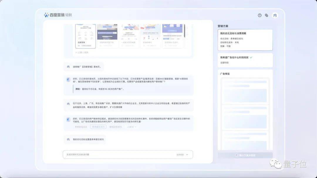 就在刚刚,百度营销官宣接入文心一言,推出新一代营销平台轻舸,也是全球首个AI Native的营销平台。