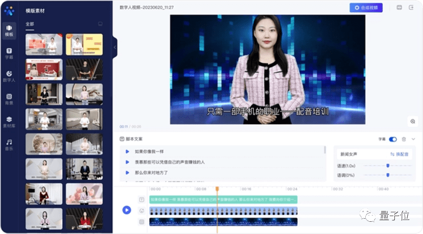 具体来说,可以2分钟生成100条创意文案,3分钟生成一个数字人建模,5分钟即可制作一支完整的数字人口播视频。