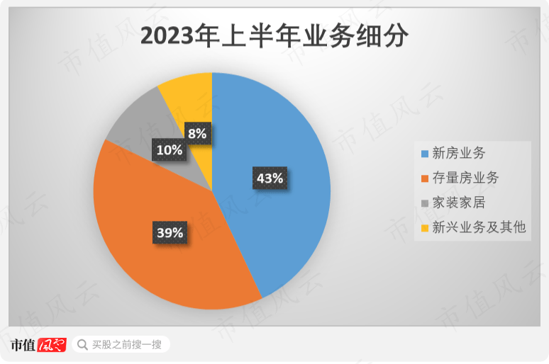 目前,公司的业务在财报中分为四类:新房业务、存量房业务、家装家居、新兴业务及其他。