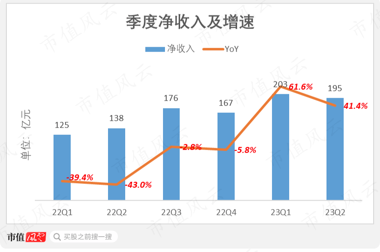 这点在公司上半年财报中得到体现:2023年二季度,公司净收入195亿元,同比增41%;上半年,净收入398亿元,同比增加51%。