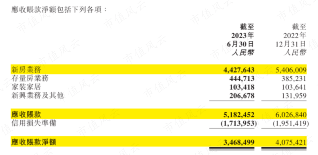 在公司的资产负债端中,最应关注的是应收账款,尤其是因为其大部分应收账款为新房业务的应收房地产开发商款项。
