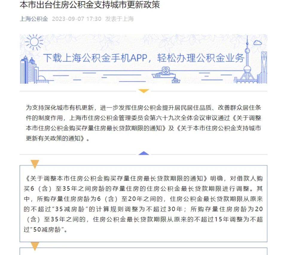 根据上海公积金管理委员会发布的《关于调整本市住房公积金购买存量住房最长贷款期限的通知》,上海将对借款人购买6(含)至35年之间房龄的存量住房的住房公积金最长贷款期限进行调整。