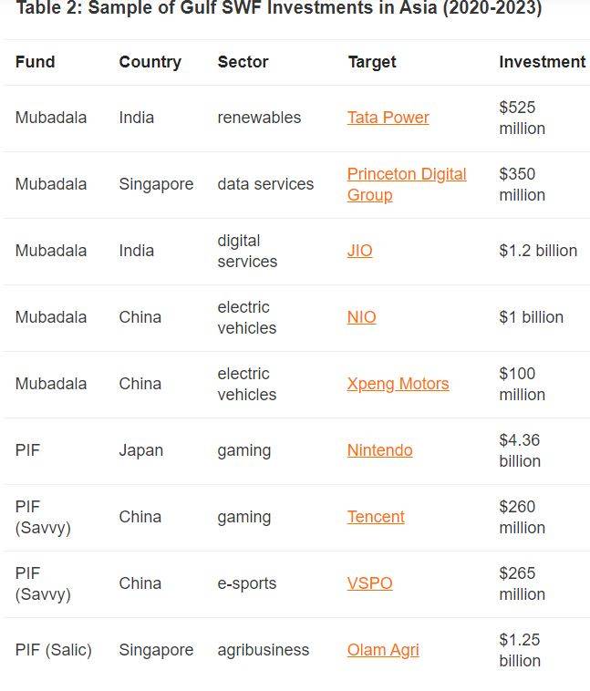 据在线跟踪机构Global SWF统计,2022年中东海湾国家的主权财富基金在全球投资支出近890亿美元,是上一年的两倍,其中516亿美元部署在欧洲和北美,其他投资焦点则聚集在亚洲。