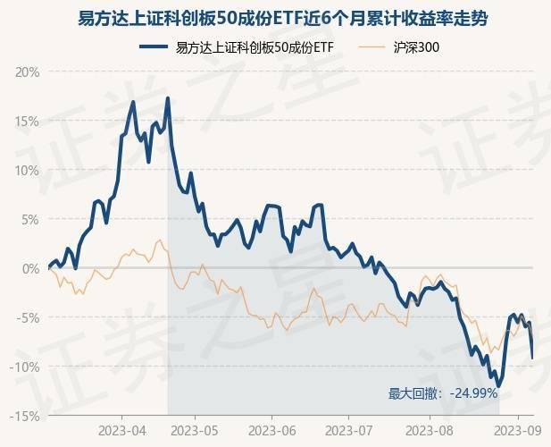 9月7日,易方达上证科创板50成份ETF最新单位净值为0.9217元,累计净值为0.6458元,较前一交易日下跌3.75%。历史数据显示该基金近1个月下跌7.11%,近3个月下跌11.6%,近6个月下跌9.14%,近1年下跌14.92%。该基金近6个月的累计收益率走势如下图:
