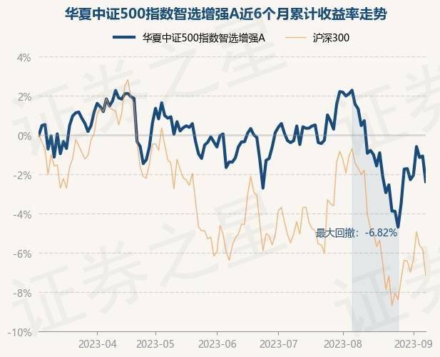 9月7日,华夏中证500指数智选增强A最新单位净值为0.9565元,累计净值为0.9565元,较前一交易日下跌1.32%。历史数据显示该基金近1个月下跌3.86%,近3个月下跌0.97%,近6个月下跌2.31%,近1年上涨0.61%。该基金近6个月的累计收益率走势如下图: