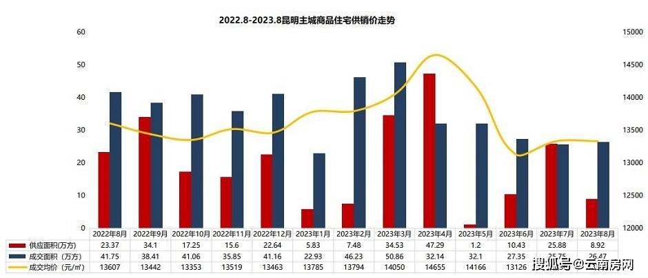 从克尔瑞的统计可以看出,过去一年昆明主城商品住宅的库存面积其实一直在下降,去年8月份库存还有798.46万平方米,但到了上个月底,库存就只剩下640.97万平方米,一年时间减少近160万平方米,库存下降还是比较明显。
