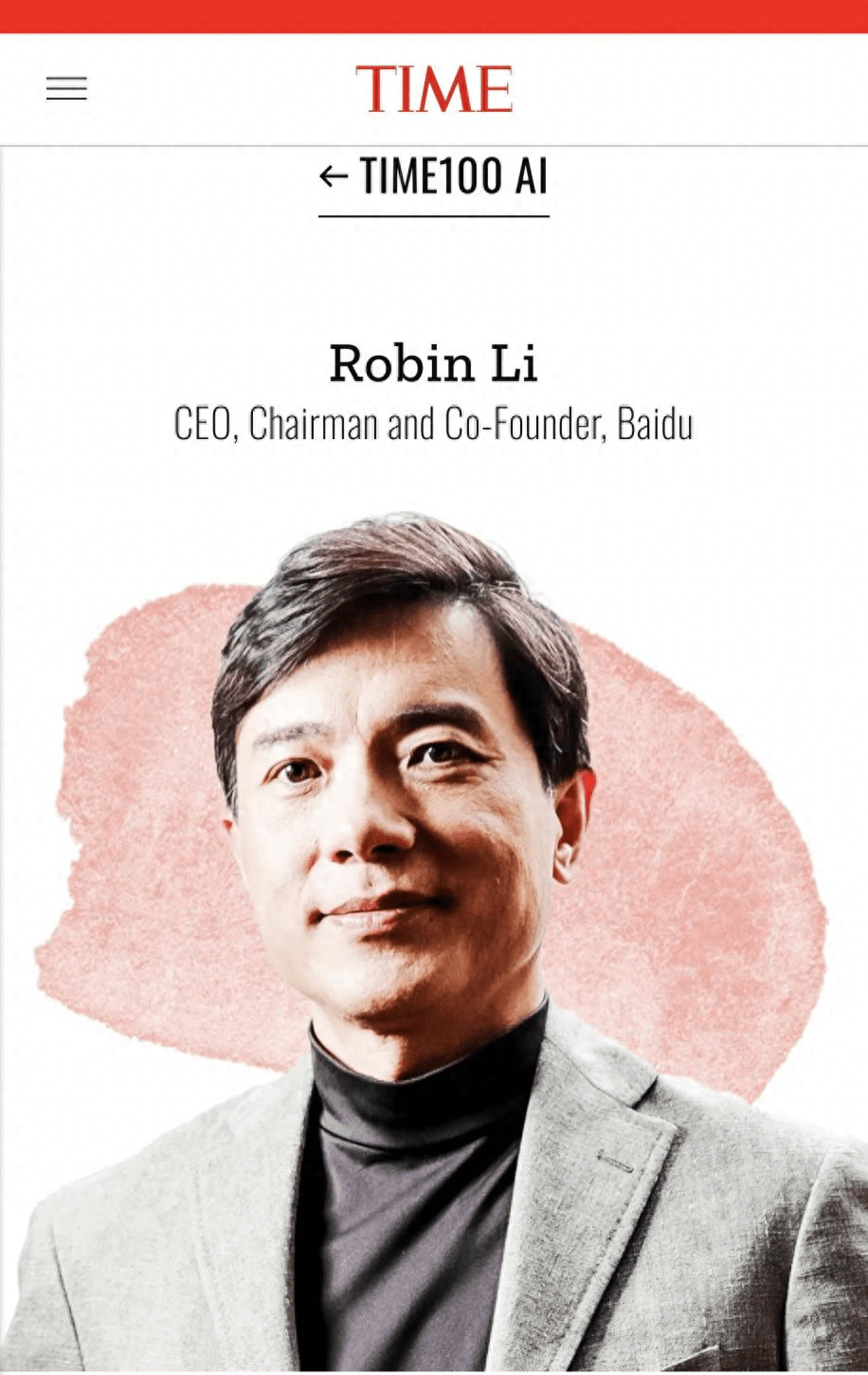李彦宏被《时代》周刊评为全球AI领袖